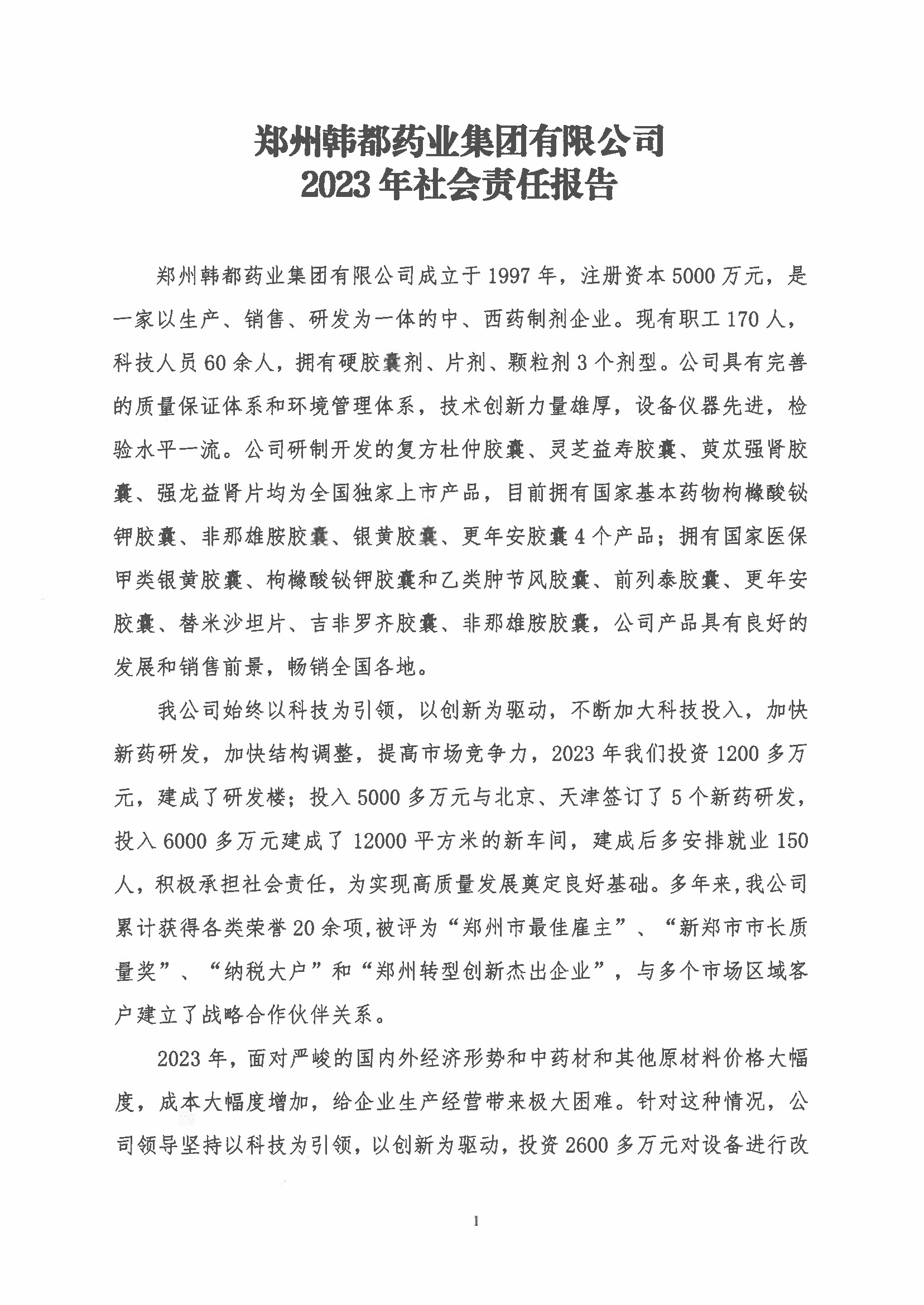 生产经营带来极大困难。针对这种情况,公司领导坚持以科技为引领,以创新为驱动,投资2600多万元对设备进行改造升级,实现降本增效。2023年按合同进度要求,完成了奥美沙坦酯氨氯地平片的注册申报工作;完成了恩格列净片及乙酰半胱氨酸颗粒两个产品的工艺验证工作;完成了吲哚布芬片、盐酸莫西沙星片、富马酸伏诺拉生片及奥司他韦胶囊四个产品的中试工作。建立了从小试交接、中试交接、工艺验证、BE备案、注册申报等新产品研究关键步骤的流程
